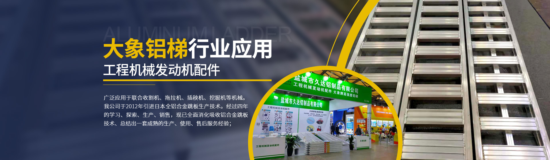 建湖縣久達鋁制品有限公司引進日本鋁合金跳板生產技術,專業生產高強度鋁合金跳板,廣泛應用于聯合收割機、拖拉機、插秧機、挖掘機等機械。 我公司于2012年引進日本全鋁合金跳板生產技術。經過四年的學習、探索、生產、銷售,現已全面消化吸收鋁合金跳板技術、總結出一套成熟的生產、使用、售后服務經驗;為提高產品質量,加大設備投入,購買歐洲進口的鋁合金焊接設備和切割設備,保證產品的焊接強度和精度;結合中國收割機作業量大、作業條件復雜、中國收割機更重等特點,生產出更適合中國國情的高強度鋁合金跳板,承載力更強,抗疲勞效果更好,使用周期更長,同等使用條件下是市場上仿制產品使用壽命的1.5倍以上。大象牌鋁梯成為中國鋁梯行業馳名品牌。
